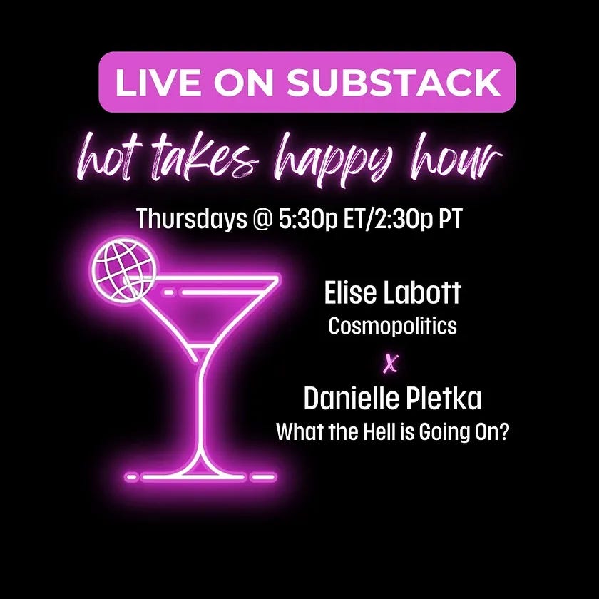 On that note: Dany and I will be back TODAY at 5:30 pm with Hot Takes Happy Hour. As always, feel free to send questions and suggested topics in the comments.
